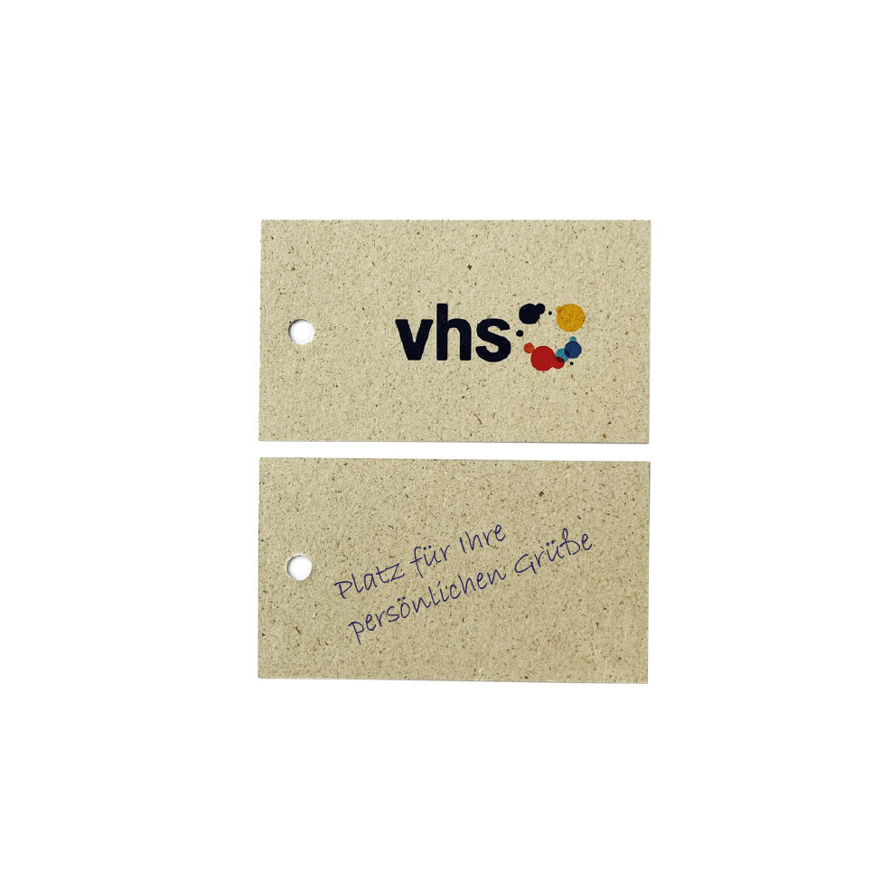 Ein toller Eyecatcher mit dem Sie Ihrem Produkt einen individuellen, professionellen Touch verleihen. Geliefert werden die Hangtags mit einer entsprechenden Lochung OHNE Schnur. Höchste Druckqualität auf hochwertigem 300g/m² Graspapier. Eine Seite bedruckt, auf der andern ist Platz für persönliche Grüße. Format: 50 x 90 mm.