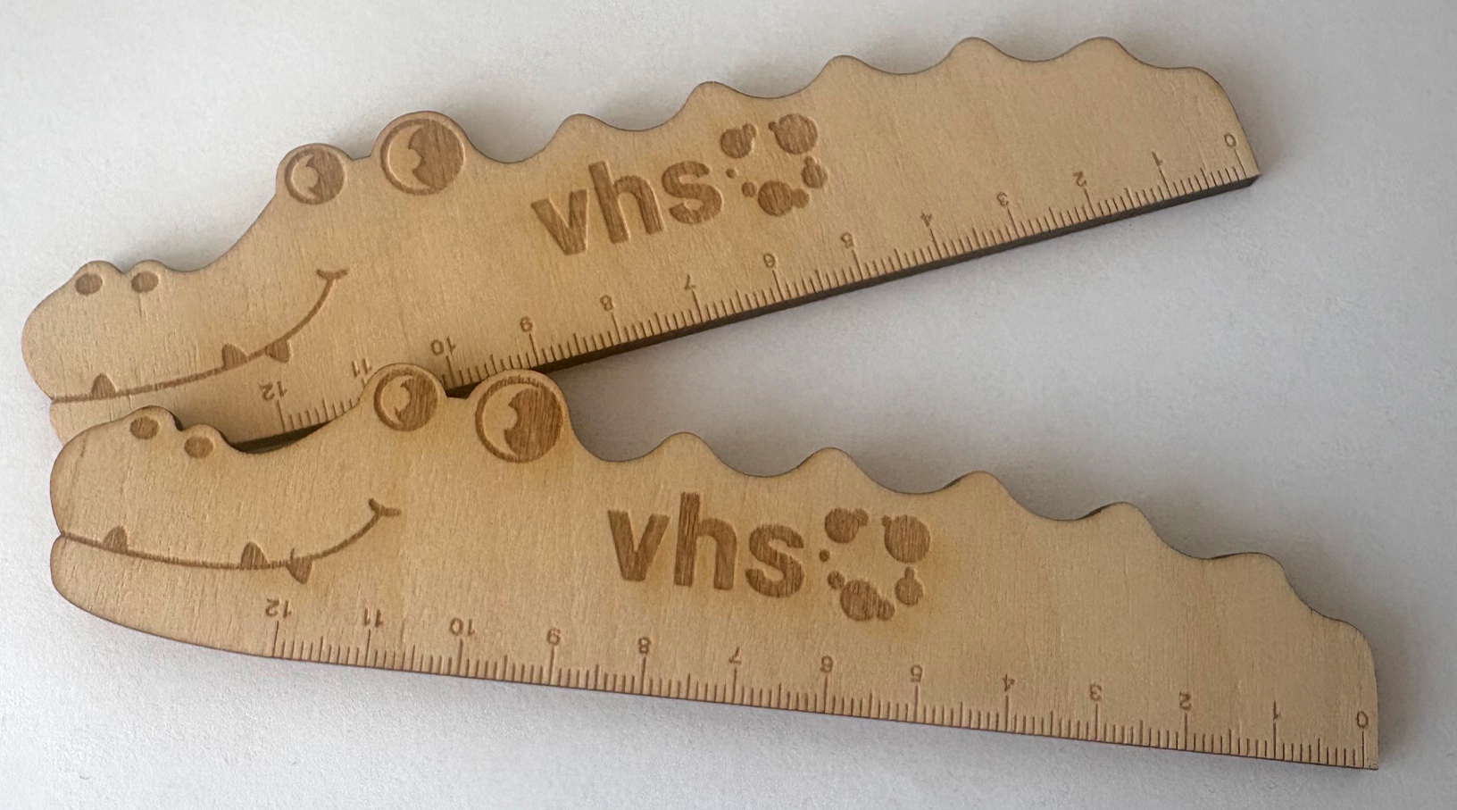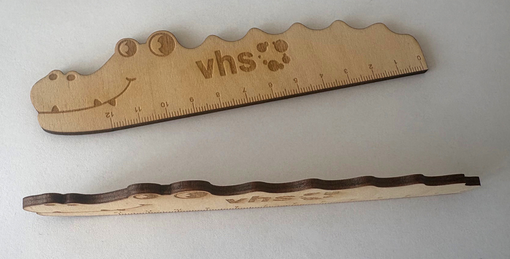 Holzlineal aus FSC Zertifiziertem Holz mit dem Motiv Krokodil, 12cm für Kinder mit vhs Lasergravur auf einer Seite